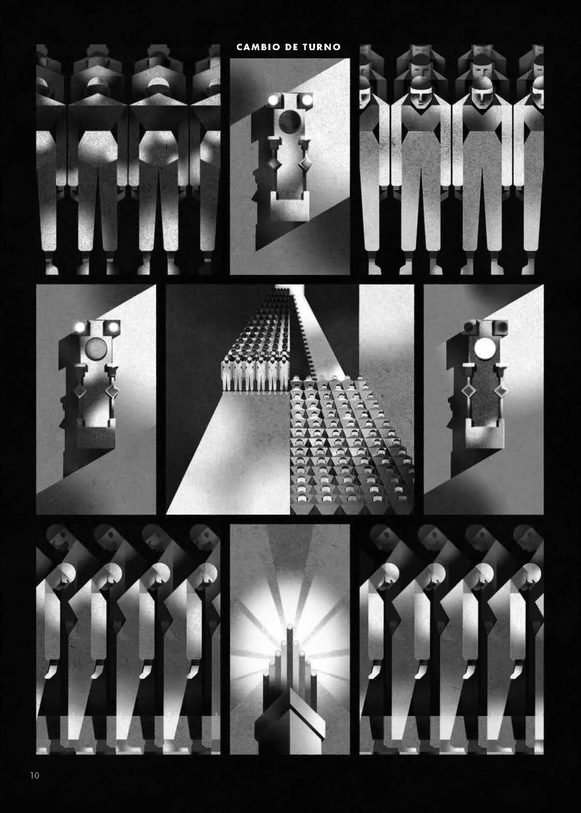 The artist Christian Montenegro illustrates these concepts with unique, forensic precision. His work, as seen in the cover art, blends classic factory aesthetics with modern design, using precise lines and industrial colors.